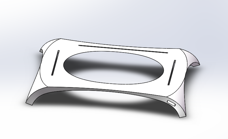 曲面手寫板我們最想得到的效果是其空間立體感,即外觀上的視覺沖擊.初步設(shè)想是一個弧面(圖示)整體外觀有了便設(shè)計細節(jié),首先想到的是筆的放置問題,考慮到該手寫板的弧形外觀會造成底部會有比較大的空間,正好可以放置手寫筆同時不會影響到外觀.