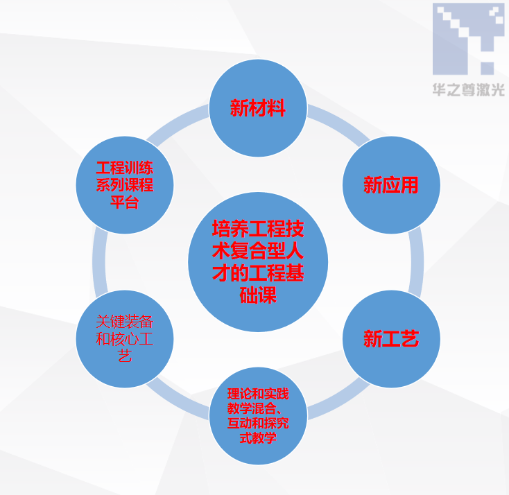 以特種加工-激光精密加工對(duì)特定功能新材料的制造為基本出發(fā)點(diǎn),牽引其它制造方法于整個(gè)產(chǎn)品中;教學(xué)過(guò)程與制造方法相結(jié)合的學(xué)習(xí)模式;